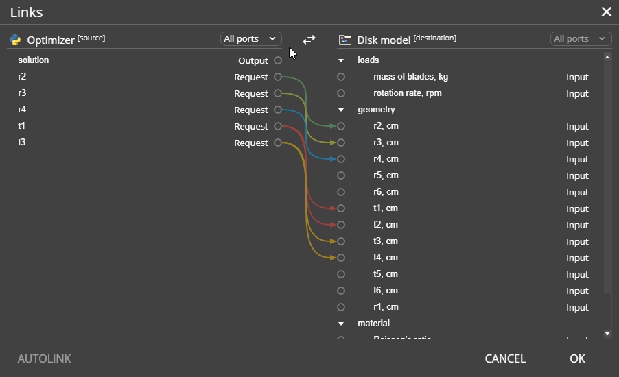 - Quicker linking for ports with matching names. Ctrl-click and drag when creating a link to instantly open the Autolink dialog. In this case, OK in the Autolink dialog links selected port pairs and closes the dialog.
