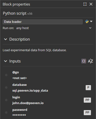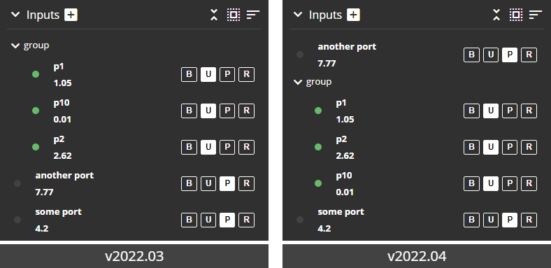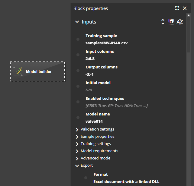 openturnsmodule in Python script blocks and user blocks implemented in Python. - 1143 The Block properties pane now shows inputs and outputs sorted in the order defined by the block. You can also switch to alphabetical order using the sorting buttons in the pane. For grouped ports, alphabetical sort order applies to port names in a group but does not change the order of groups.