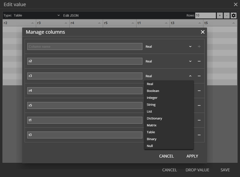 - 1329 1330 Fixed the inability to set a port value if its data type is a custom table with predefined columns.