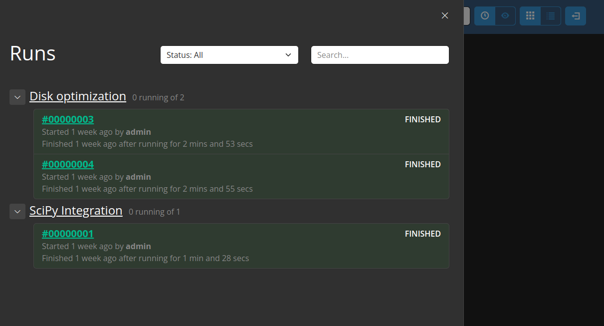api.message_pop()REST API method in the Python script block now raises aTimeoutErrorinstead of a generic exception. If you use messaging in Python script, it is recommended to update your scripts to specifically handle theTimeoutErrorfromapi.message_pop(). - 1005 Added logging for block editing operations. When you add,