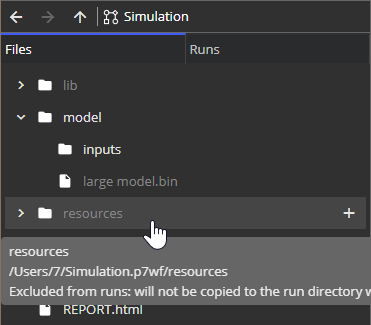 [####]name suffix. When you run a workflow, pSeven copies this folder's contents to every new working directory created by the block. - To avoid needless copying, place read-only files somewhere outside of the Files folder.