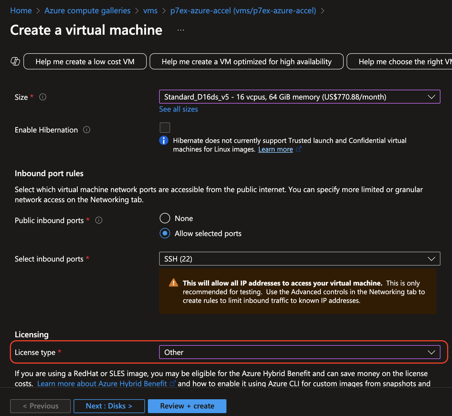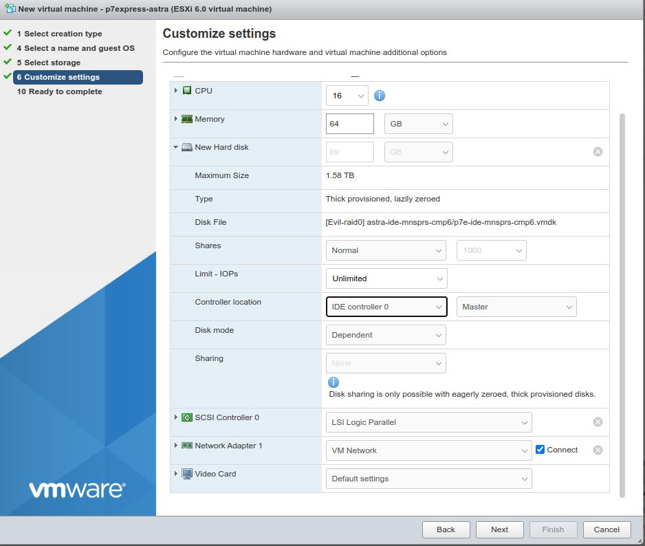 Configure the VM hardware. Note that the minimum settings are 16 CPU and 64 GB memory.