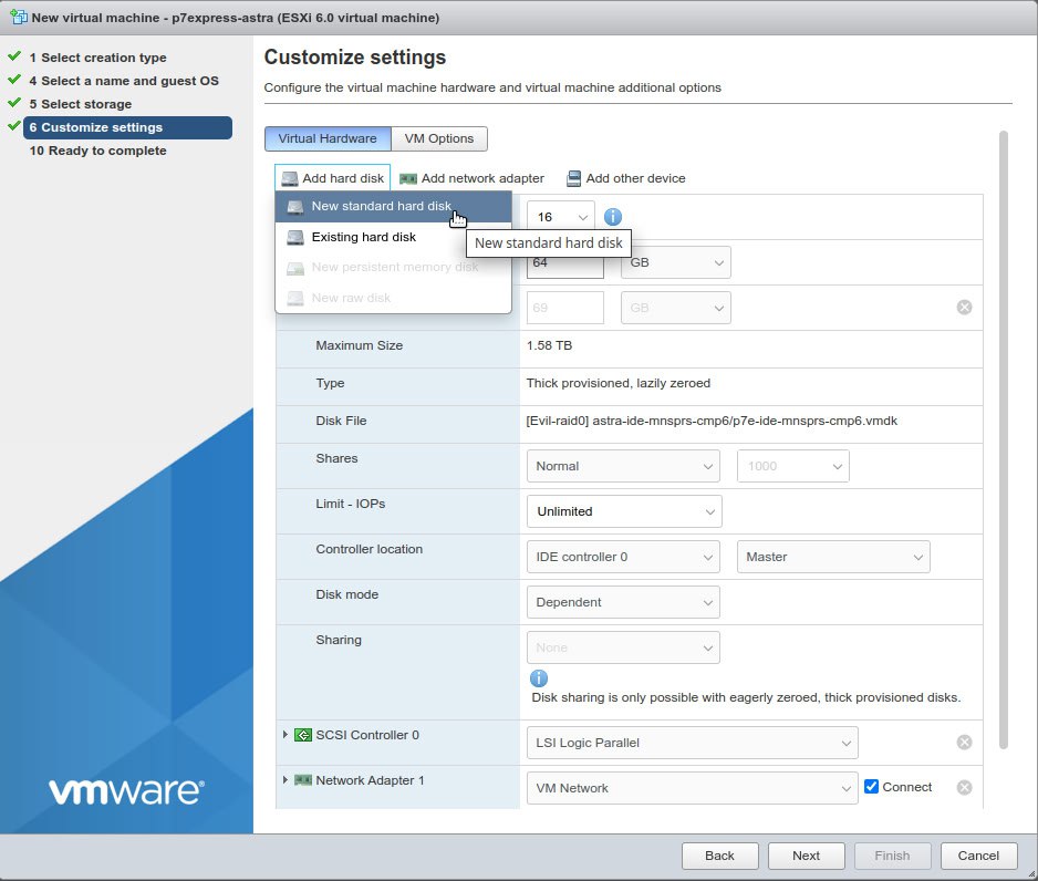 VMware ESXi - create a new VM -