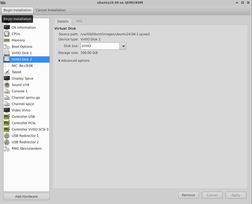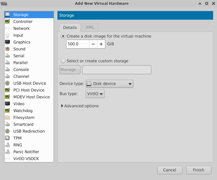 - Storage controller type: virtio-scsi