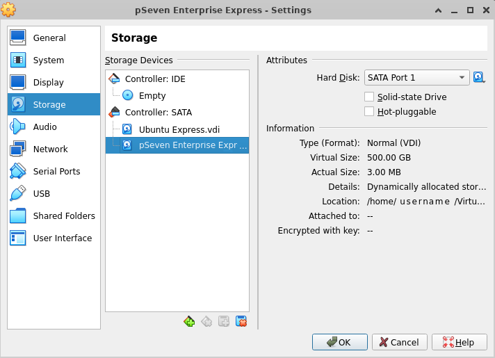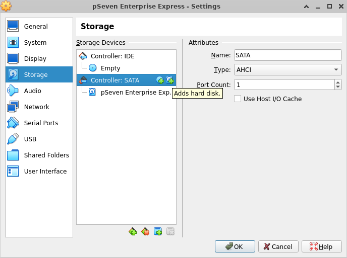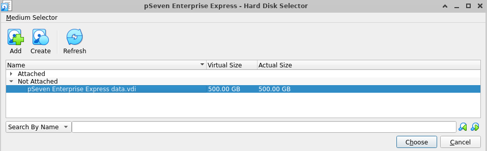 When the Express VM starts, it finds the largest one of the secondary disks and uses it as the storage disk, even if there is another, smaller existing storage disk connected. If the larger disk isn't labeled as a storage disk by pSeven Enterprise Express, it'll be formatted.