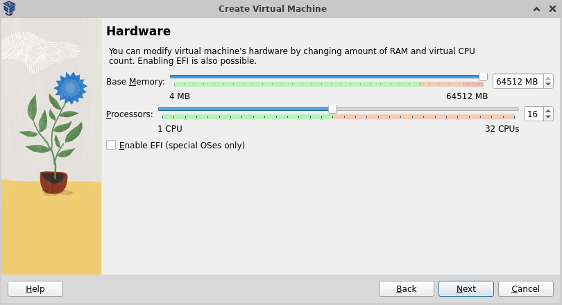 Assign memory to the VM. Note that 64 GB is the minimum required.