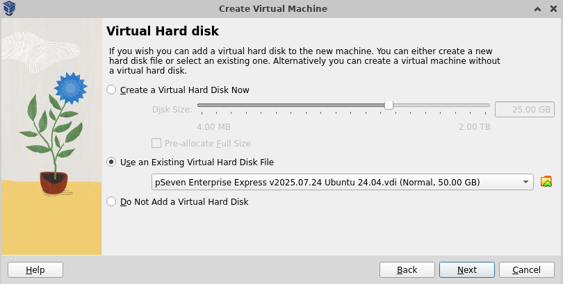 Add the existing boot disk from your pSeven Enterprise Express package (the VMDK image).
